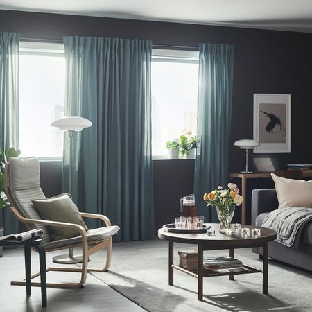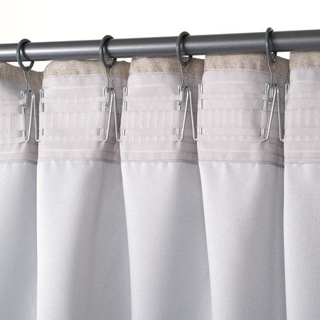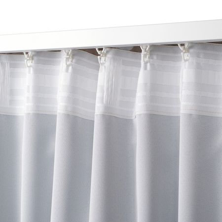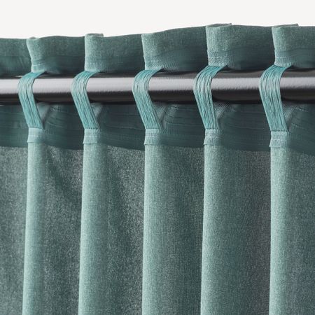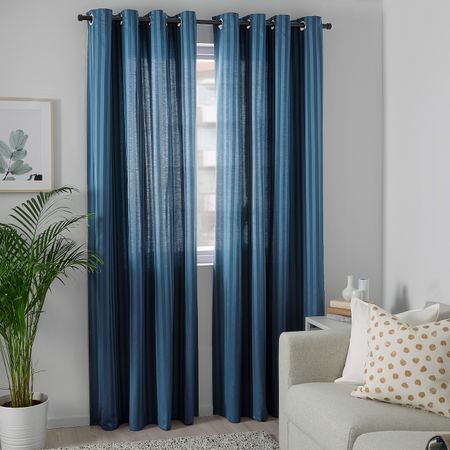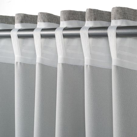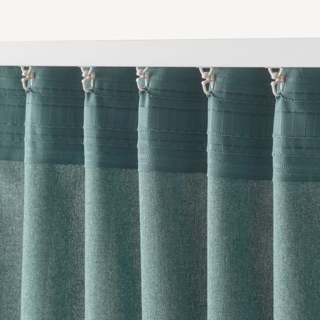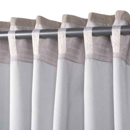 Такое решение для оформления окна снижает уровень проникновения света с улицы и защищает комнату от посторонних взглядов.Можно вешать, пропустив карниз через потайные петли, или с помощью колец и крючков.