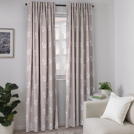 Гардины, 2 шт., темный коричнево-красный/орнамент «листья» 145x300 см IKEA HAKVINGE ХАКВИНГЕ