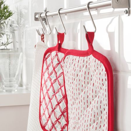 С петелькой для подвешивания. Цвета сохранят яркость после стирки, так как хлопок окрашен в пряже. Каждое полотенце с индивидуальным дизайном. Вымойте изделие перед первым использованием. Дизайнер Synnöve Mork.