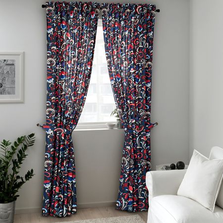 Гардины, 2 шт., синий 145x300 см IKEA HANNALILL ХАННАЛИЛЛ