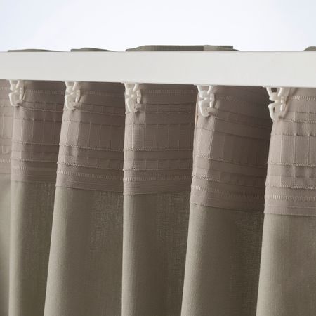 Можно повесить на гардинный карниз или гардинную шину.Можно вешать, пропустив карниз через потайные петли, или с помощью колец и крючков.Тесьма по верхнему краю позволяет делать складки, используя гардинные крючки РИКТИГ.