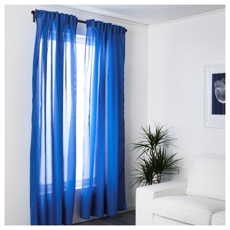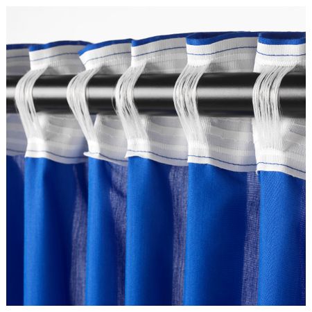 Гардины, 1 пара СОММАР 2017, белый/синий (145x300 см)