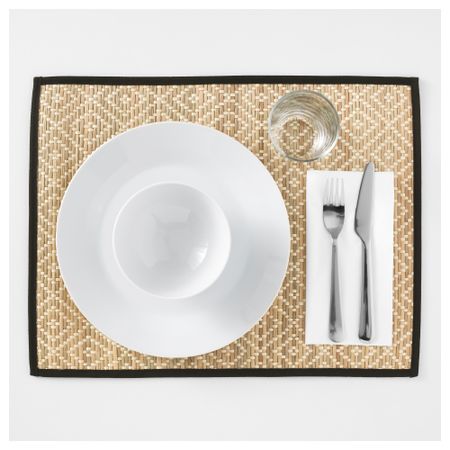 Защищает поверхность столешницы и уменьшает шум от посуды и столовых приборов. Длина: 45 см. Ширина: 35 см. Основные части: Листья пальмового дерева, Морские водоросли. Окантовка: 100% полиэстер. Возобновляемый материал (морские водоросли). Размер: 45x35 см