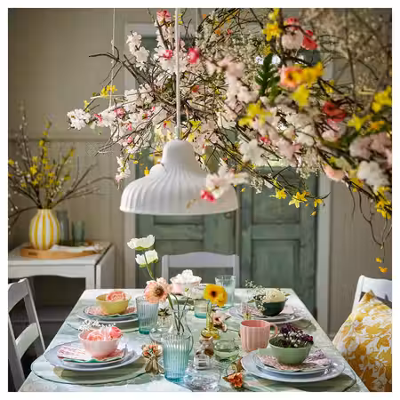 Весной сервировка в светлых цветах смотрится особенно гармонично.