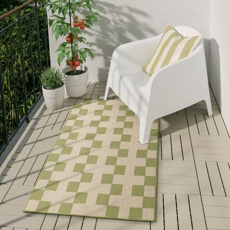 Цвет и техника плетения помогают добиться впечатления натурального материала. Этот простой в уходе и устойчивый к воздействию влаги ковер можно использовать не только в помещении, но и на улице.