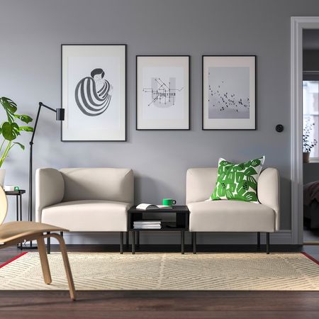 Диван ГЛОСТАД лаконичного дизайна очень комфортен благодаря высокому сиденью, подлокотникам с набивкой и мягким подушкам спинки, которые не будут сбиваться.