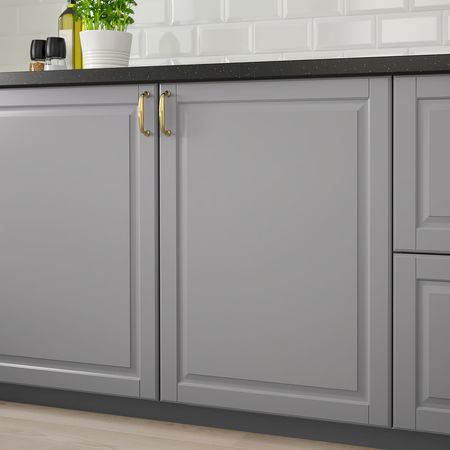 Классический дизайн дверцы БУДБИН мягкого серого тона подчеркнет традиционную выразительность кухни.