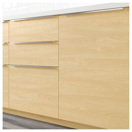 Гладкая светлая дверца ТИНГСРИД с выразительным рисунком, имитирующим фактуру массива березы, подчеркнет современный стиль вашей кухни. Меламиновая пленка – прочная, устойчивая к воздействию влаги и появлению царапин поверхность.