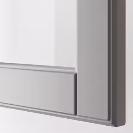Серая дверца БУДБИН с широкой рамой подчеркнет традиционный стиль вашей кухни, добавив в интерьер сдержанный изящный колорит. Гладкие лакированные дверцы устойчивы к воздействию влаги и загрязнениям и просты в уходе. Бесплатно 25 лет гарантии.