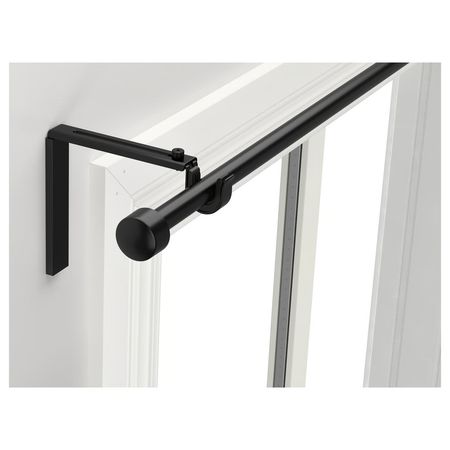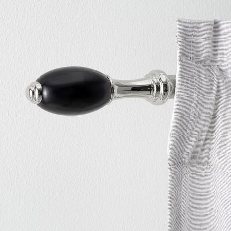 Этот черный металлический карниз с комплектными наконечниками легко выдвигается до нужной вам длины.