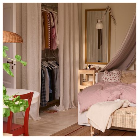 Эти белые льняные гардины создадут в комнате уединенную и непринужденную атмосферу.