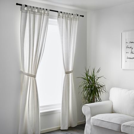 Гардины пропускают дневной свет; можно использовать в многослойных решениях для оформления окон.Можно повесить на гардинный карниз или гардинную шину.Тесьма по верхнему краю позволяет делать складки, используя гардинные крючки РИКТИГ.