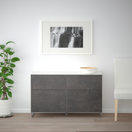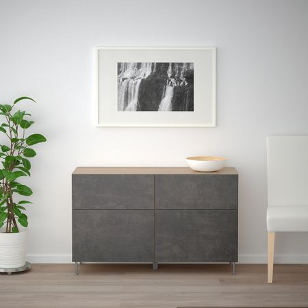 Шкаф для ТВ, комбинированный, стекляные дверцы, Ханвикен черно-коричневый прозрачное стекло 240x40x230 см IKEA BESTÅ БЕСТО