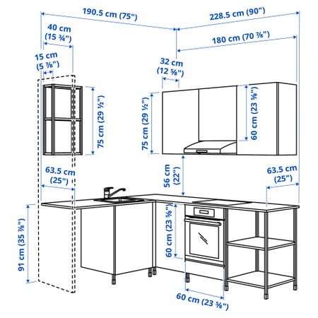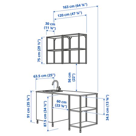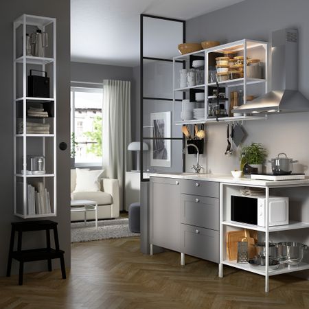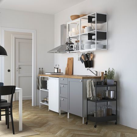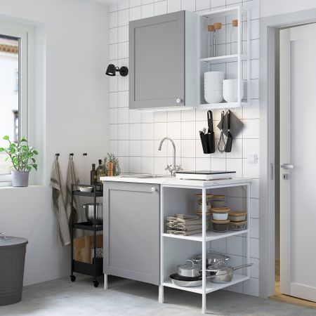 Кухня, 163x63.5x222 см, белый, серый каркас IKEA BEGIVENHET БЕГИВЕНХЕТ