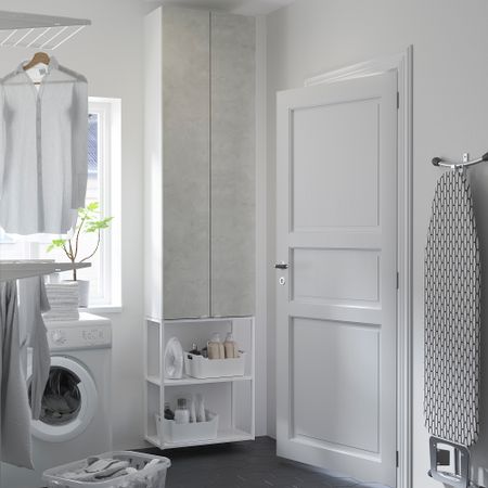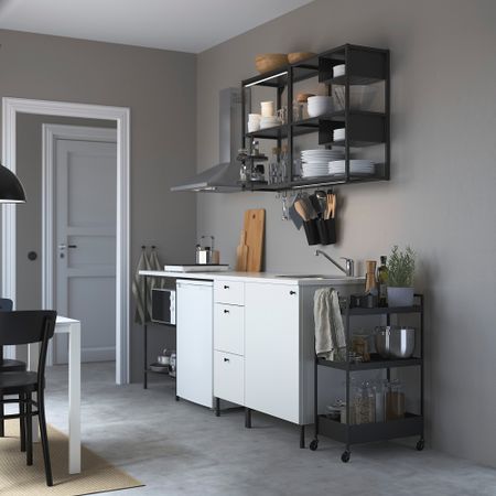 Позволяет эффективно использовать пространство стены и хранить бокалы, столовую посуду, бакалею и консервы под рукой. Используйте нужное количество предметов серии КНОКСХУЛЬТ, чтобы создать кухонное решение, соответствующее вашим потребностям.
