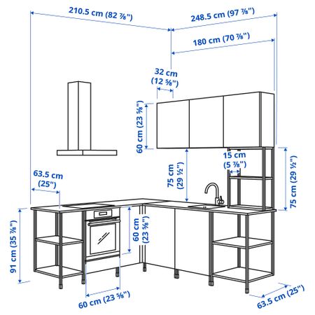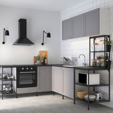 Использовать только с газовой или стеклокерамической плитой. Вы можете выбрать готовую комбинацию или создать индивидуальное решение, комбинируя модули КНОКСХУЛЬТ. Отличное бюджетное решение для кухни среднего размера с отдельно стоящей плитой.