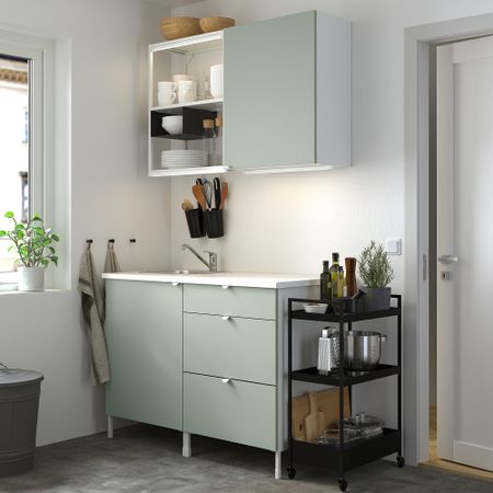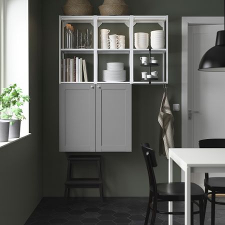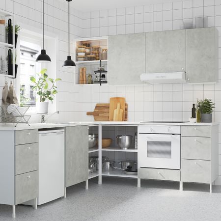 Напольный шкаф с полкой, дверцей, 40x62x75 см, белый, под бетон IKEA BEGIVENHET БЕГИВЕНХЕТ