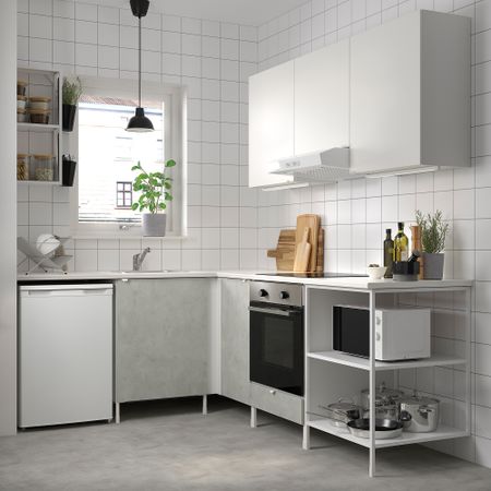 Комбинация для хранения, белый, под дуб, 90x32x180 см IKEA BEGIVENHET БЕГИВЕНХЕТ