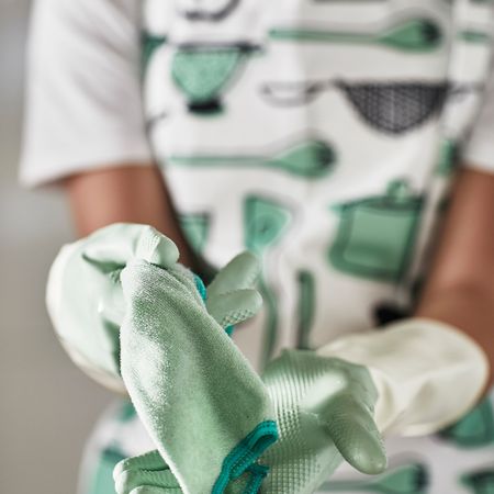 Соблюдайте осторожность при обращении с ножами и другими острыми предметами. Они могут повредить перчатки.Сильные кислоты, едкие чистящие вещества и аммиак могут повредить перчатки. Натуральный латекс