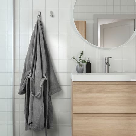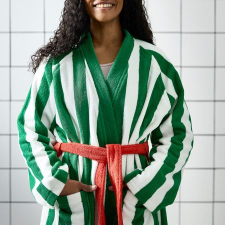 Этот купальный халат с рукавами ¾ из мягкой вафельной ткани так приятно надеть после душа.