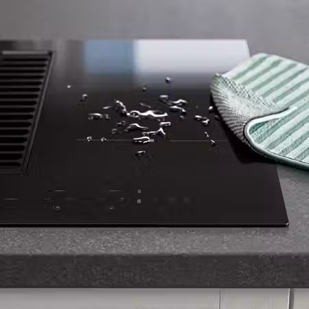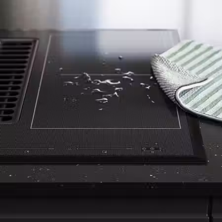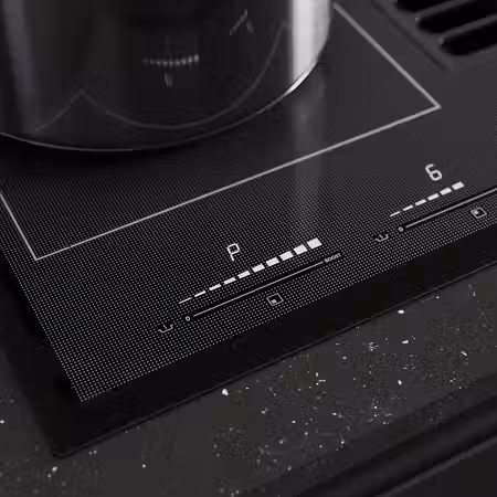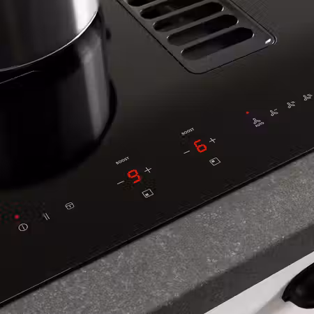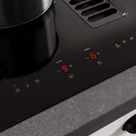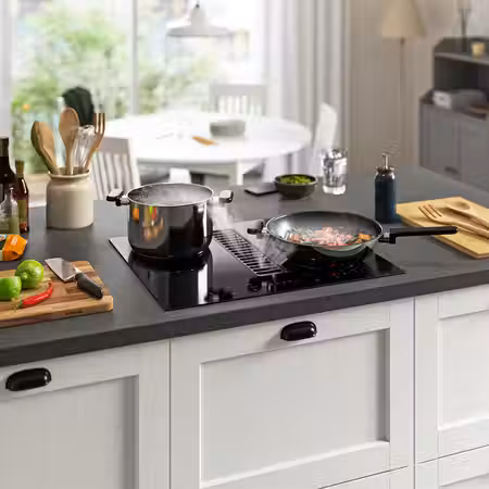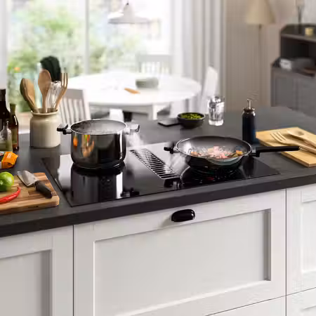 Индукционная варочная панель TÄCKNAN из серии IKEA 300 со встроенной вытяжкой позволяет наслаждаться видом и беседой, ведь вам не будет мешать громоздкая вытяжка перед глазами. В ней есть всё необходимое для приготовления вкусной еды в приятной
