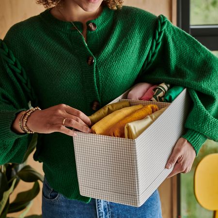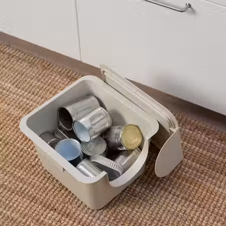 Контейнеры TRÖSKNING помогают сэкономить место и вписать решения для сортировки мусора в интерьер, при этом их можно ставить отдельно или стопкой друг на друга.