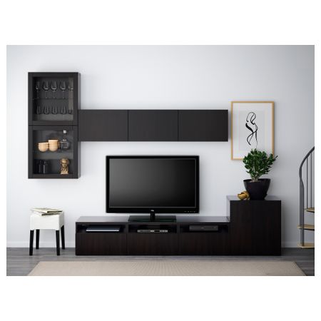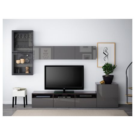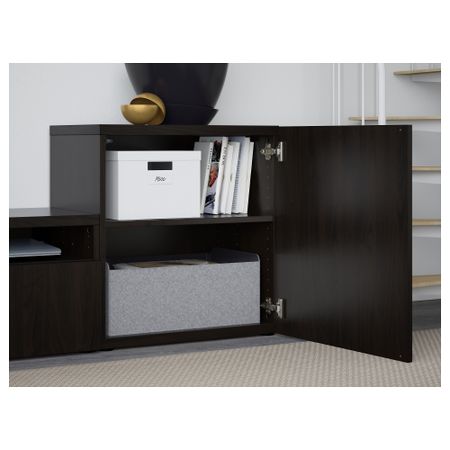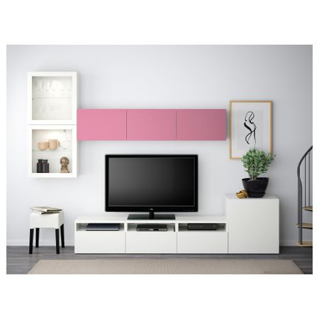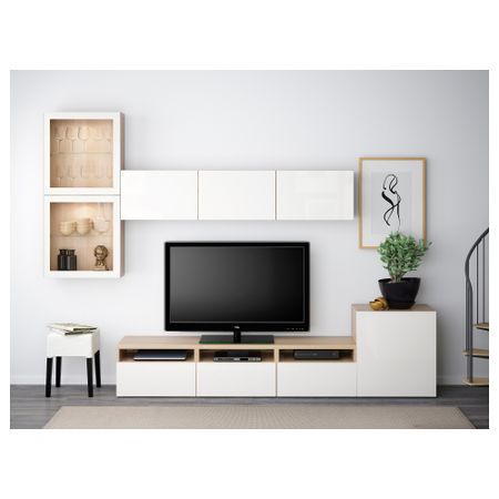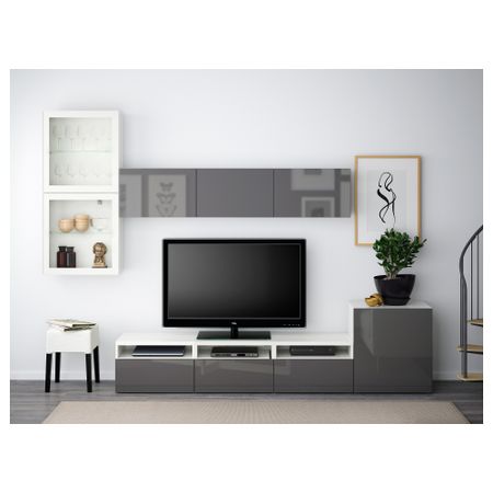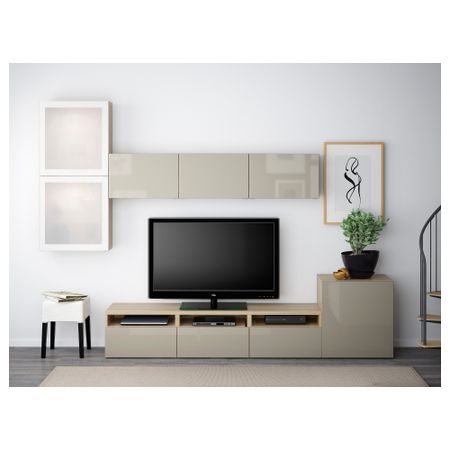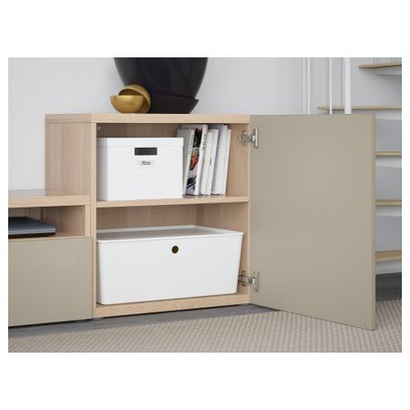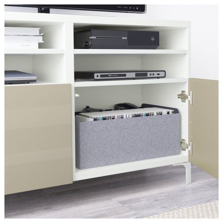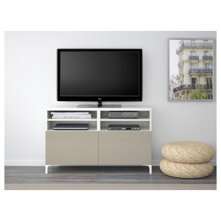 Тумба под ТВ, с дверцами БЕСТО, белый, Сельсвикен глянцевый/бежевый (120x40x74 см)