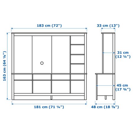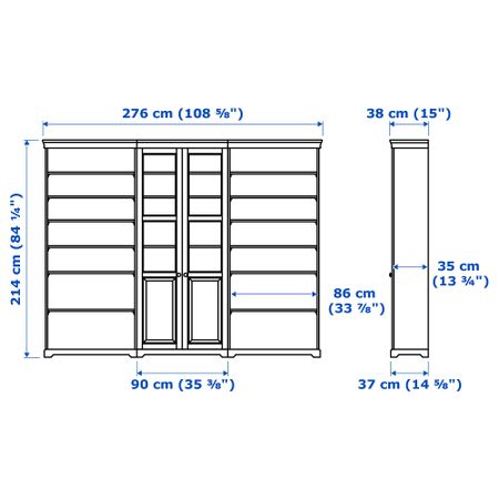 Карниз и цокольная планка придают законченный вид, когда две или более секций объединяются вместе. Съемные полки позволяют регулировать пространство. 2 закрепленные полки для большей устойчивости.