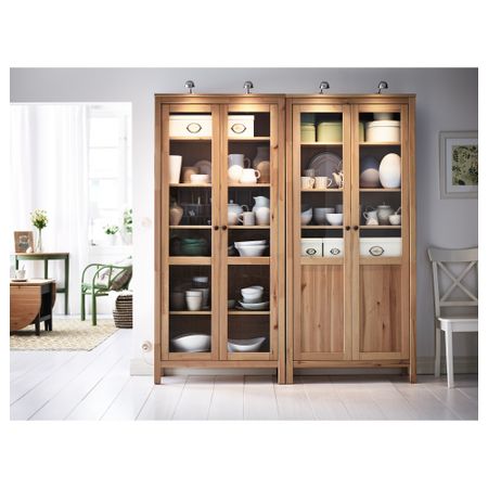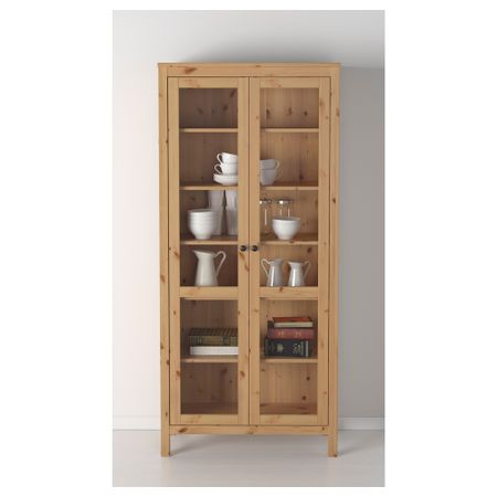 Ширина: 180 см. Глубина: 37 см. Высота: 197 см. Основные части/ Верхняя панель: Массив сосны, Морилка, Прозрачный акриловый лак. Стеклянные панели: Закаленное стекло. Задняя панель: ДВП. Шкаф с глух/стекл дверц: Возобновляемый материал (древесина). Размер: 180x197 см