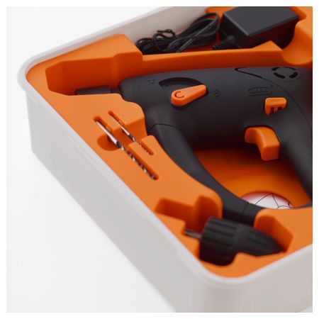 Беспроводная дрель для сверления с ударом для работы по бетону, кирпичу и камню или для обычного сверления при работе по другим материалам – дополнительный патрон прилагается. Размер: 14.4 V