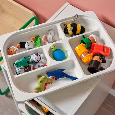 Серия удобной и устойчивой мебели для хранения игрушек.