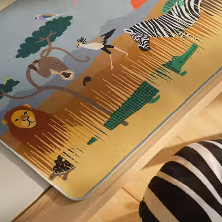 Такая подкладка защитит стол от загрязнений и царапин и при этом обеспечит ровную поверхность, на которой ребенку удобно писать и рисовать.