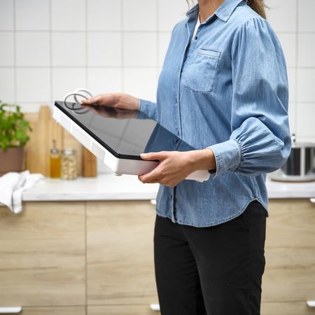 Эту портативную варочную панель можно использовать для приготовления пищи в маленькой кухне или просто иметь как дополнительную. Панель легко переносить с места на место, а при необходимости освободить место на столешнице ее можно совсем убрать со