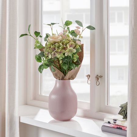 Букет из искусственных цветов выглядит как настоящий и долго сохраняет привлекательный и свежий внешний вид. Стебель можно укоротить с помощью кусачек. Стебли из металлической проволоки легко согнуть, чтобы отрегулировать высоту букета.