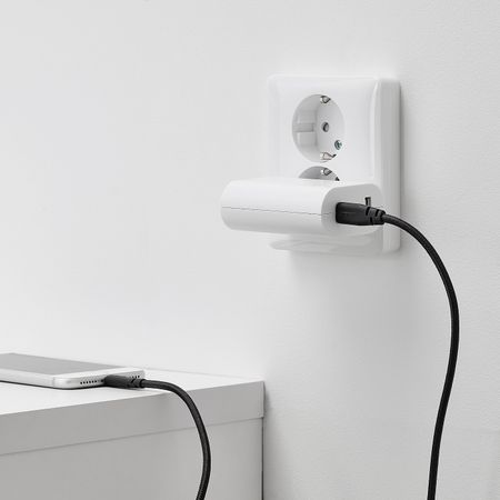 Текстильная оплетка делает кабель более долговечным и стильным.Длина этого кабеля – 1,5 м, что немного длиннее, чем обычные кабели, которые поставляются в комплекте с телефоном. Поэтому его будет удобно использовать в поезде или кафе.