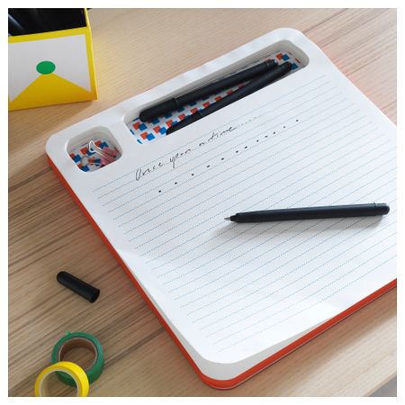 Для аккуратного письма прилагается лист в линейку и клетку, положите его между страницами, чтобы писать было удобнее. На обратной стороне обложки есть шаблон, чтобы подписать блокнот. Благодаря закругленным уголкам страницы не обтреплются.