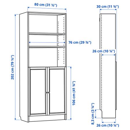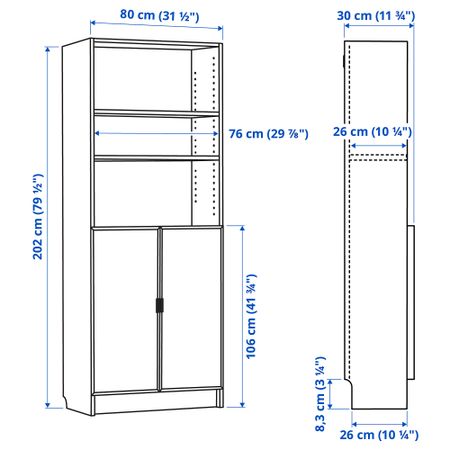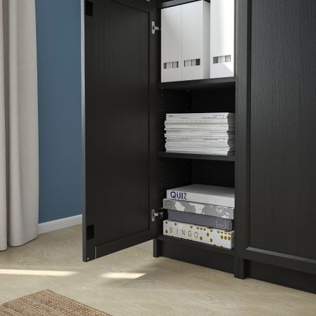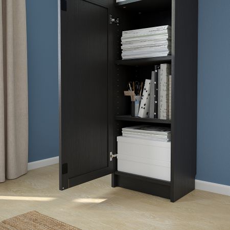BILLY БИЛЛИ 992.810.44 Стеллаж с дверьми, 80x30x106 см, черно-коричневый , OXBERG ОКСБЕРГ