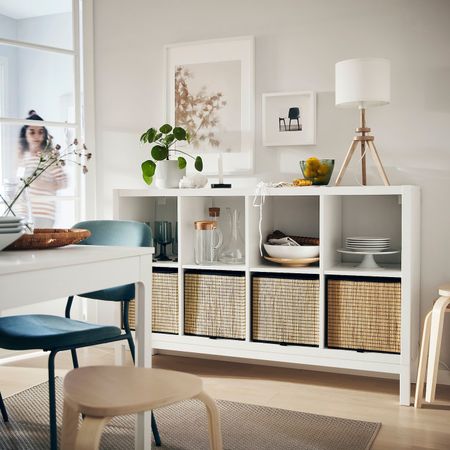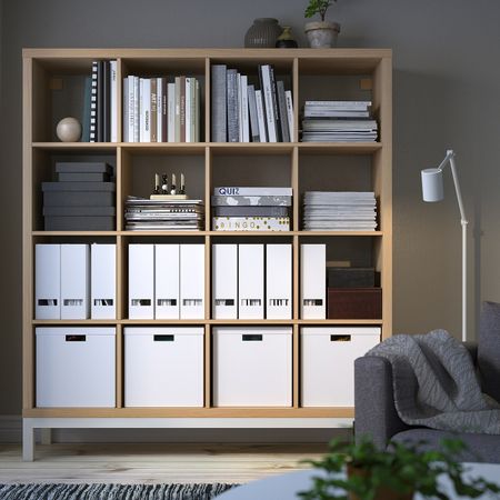 KALLAX КАЛЛАКС 194.439.79 Стеллаж с основанием, черно-коричневый/белый 147x59 см