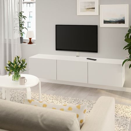 Чтобы подчеркнуть современный и лаконичный стиль интерьера, тумбу под ТВ БЕСТО можно закрепить на стене. Дополнительный плюс — ножки не будут мешать уборке. Вы можете использовать нажимной механизм или устройство для плавного закрывания.