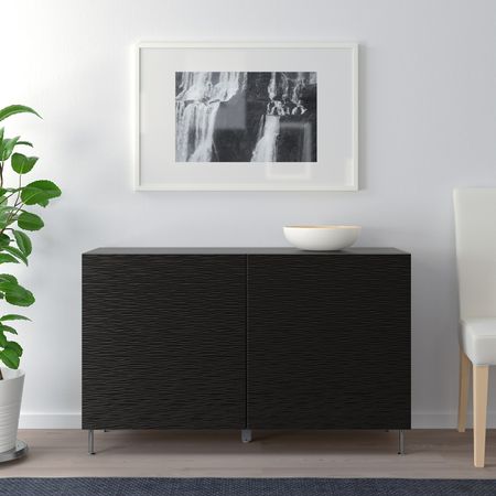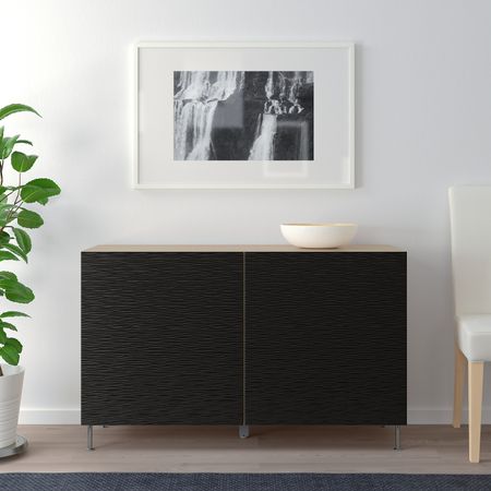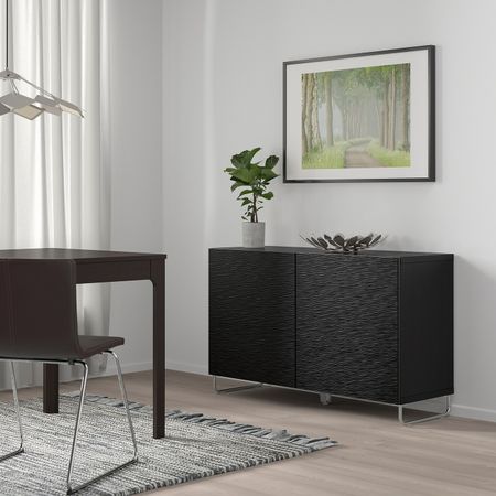 Шкаф книжный со стеклянными дверьми, черно-коричневый 120x30x202 см IKEA BILLY БИЛЛИ / OXBERG ОКСБЕРГ