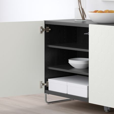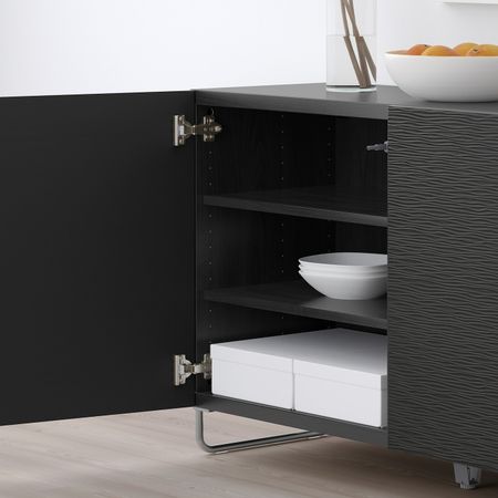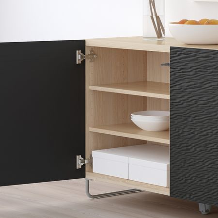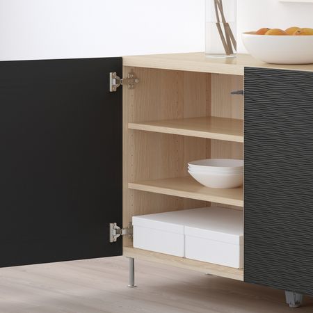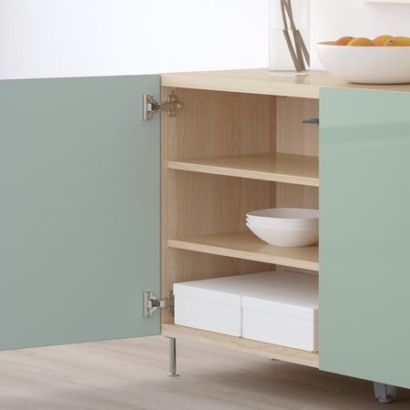 Стеклянные дверцы защищают любимые вещи от пыли.Съемные полки; устанавливайте на разном уровне в соответствии с необходимостью.Конструкция петель позволяет отрегулировать и выровнять дверцу по вертикали и горизонтали.Отделка из шпона.