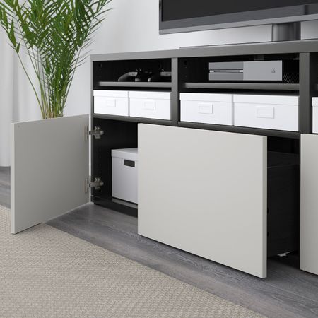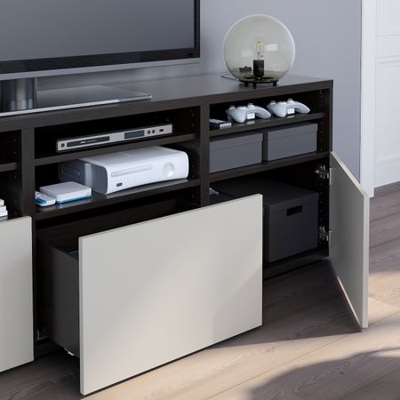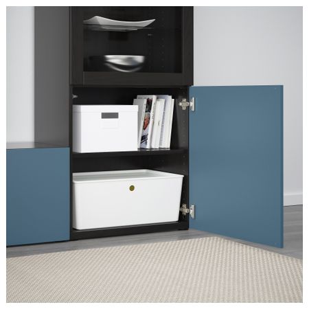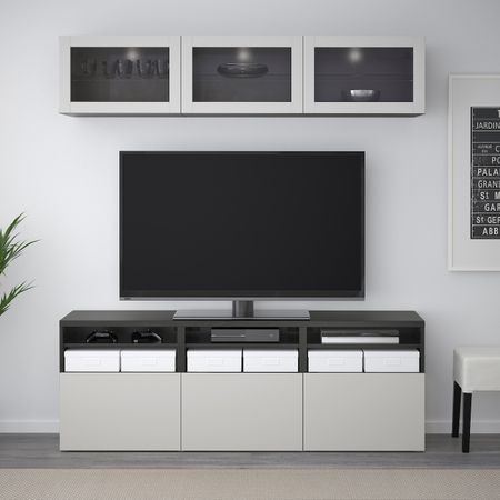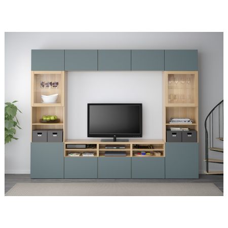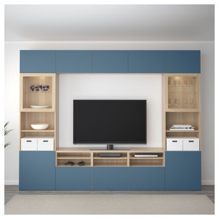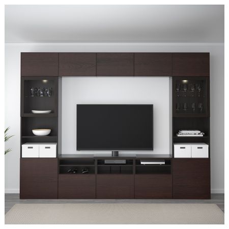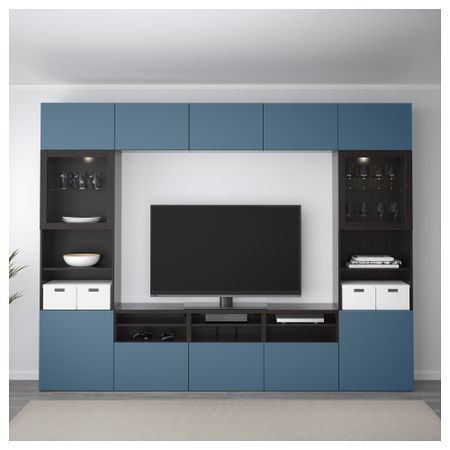 Шкаф для ТВ, комбинированный, стекляные дверцы БЕСТО, черно-коричневый Вальвикен, темно-синий прозрачное стекло (300x40x230 см)