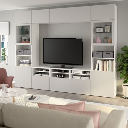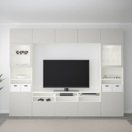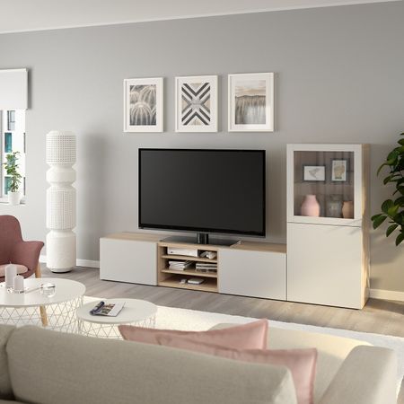 Благодаря доводчикам ящики и дверцы закрываются плавно и бесшумно. Эта комбинация для ТВ предоставит достаточно места для хранения, чтоб в вашей гостиной царил идеальный порядок. Размер: 300x40x230 см