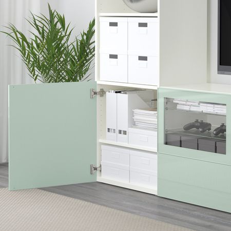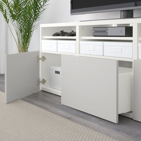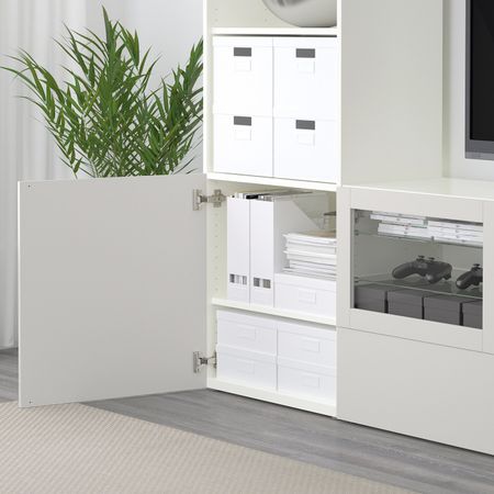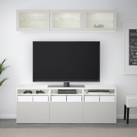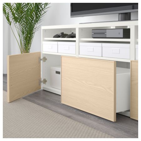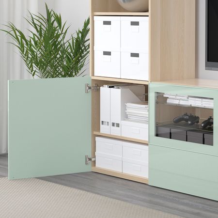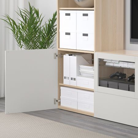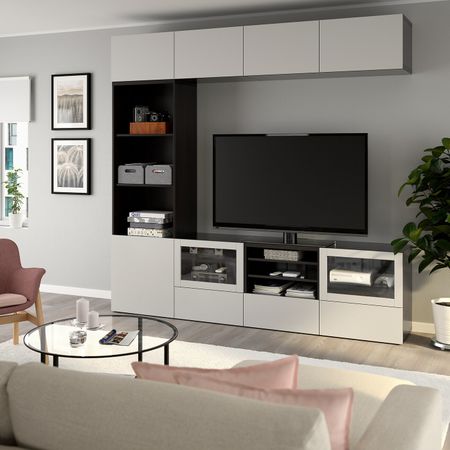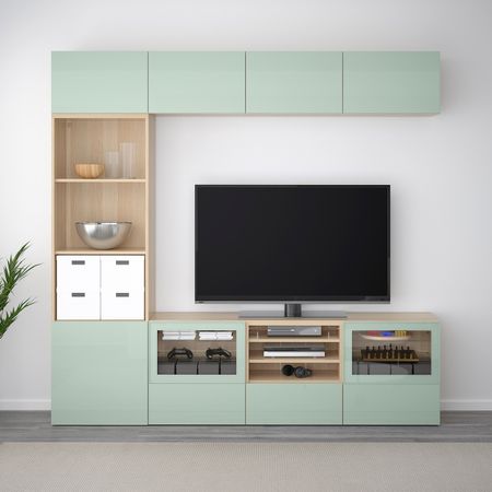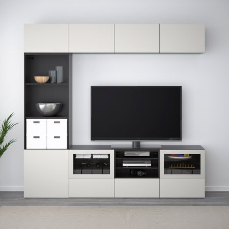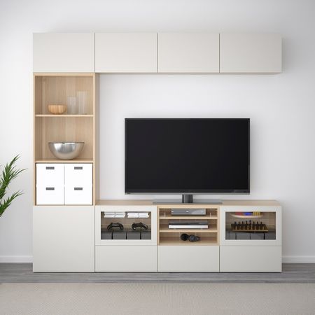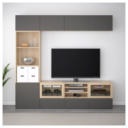Шкаф для ТВ, комбинированный, стекляные дверцы БЕСТО, под беленый дуб Грундсвикен, темно-серый прозрачное стекло (180x40x192 см)