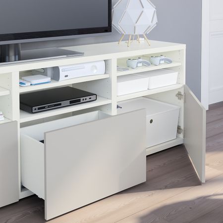 Благодаря доводчикам ящики и дверцы закрываются плавно и бесшумно. Эта комбинация для ТВ предоставит достаточно места для хранения, чтоб в вашей гостиной царил идеальный порядок. Размер: 180x40x192 см