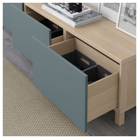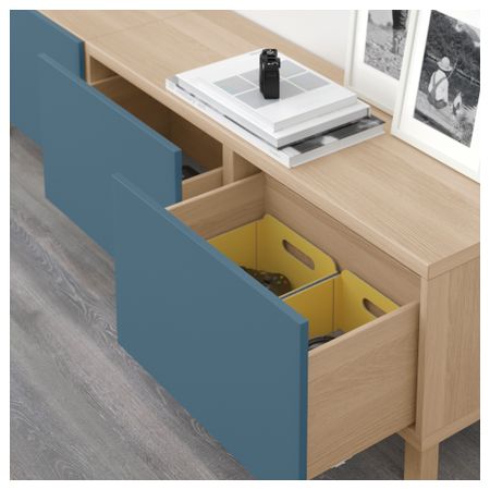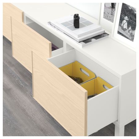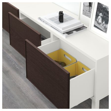 Благодаря интегрированному нажимному механизму ящики открываются легким нажатием. Ножки придают комбинации БЕСТО более легкий вид, поднимая модули на полом. Кроме того, это упрощает уборку. Три вместительных ящика обеспечат порядок в хранении. Размер: 180x40x48 см
