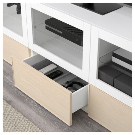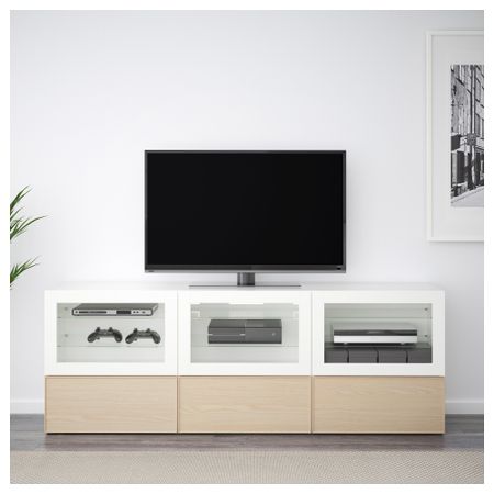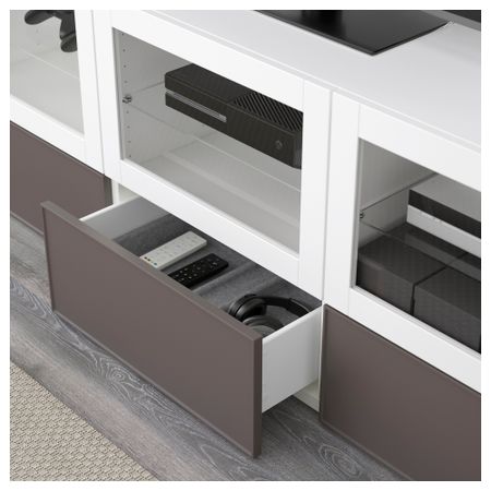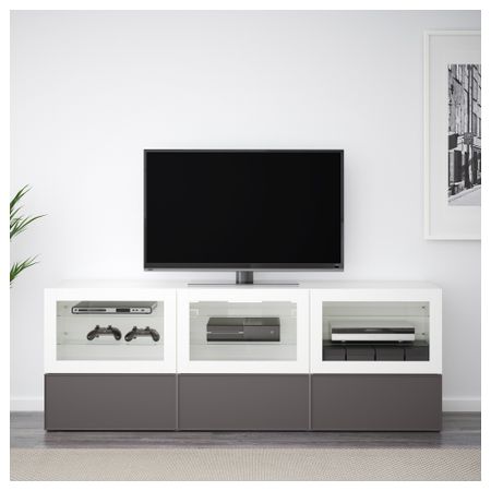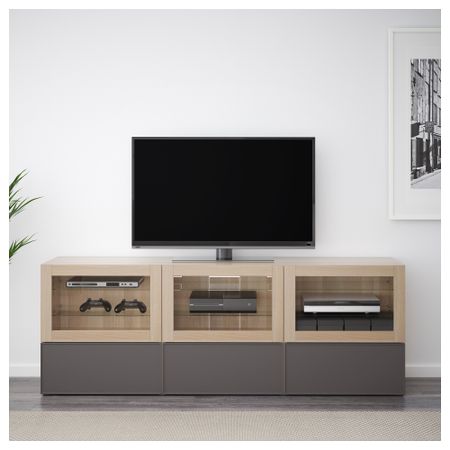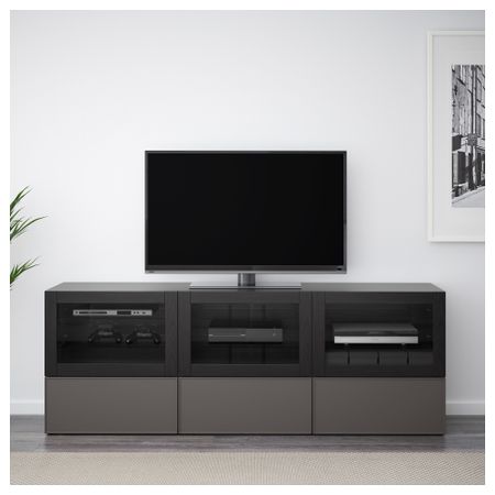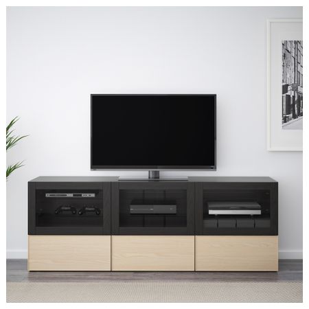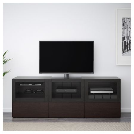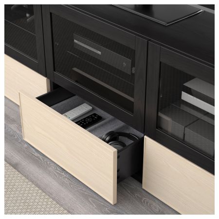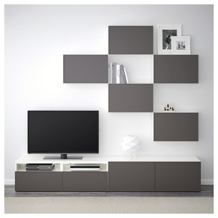 Шкаф для ТВ, комбинация БЕСТО, белый, Инвикен черно-коричневый (240x20/40x204 см)