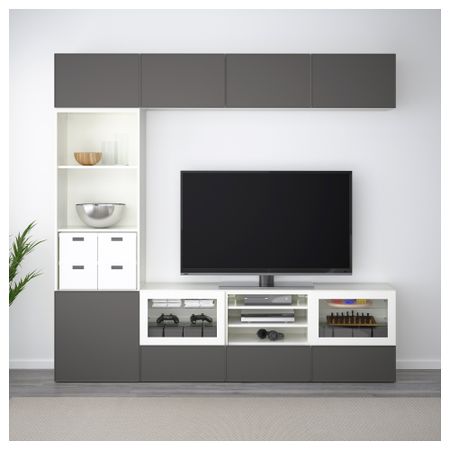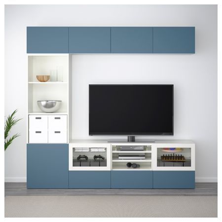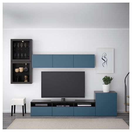 Шкаф для ТВ, комбинированный, стекляные дверцы БЕСТО, черно-коричневый, Вальвикен серо-бирюзовый, прозрачное стекло