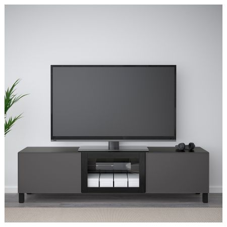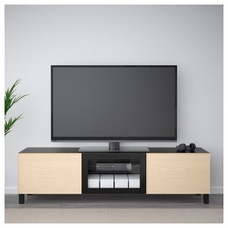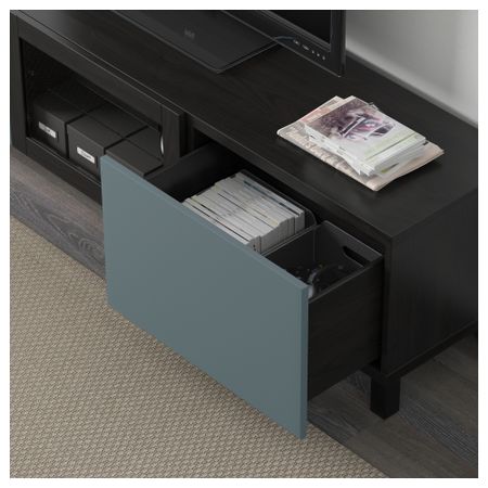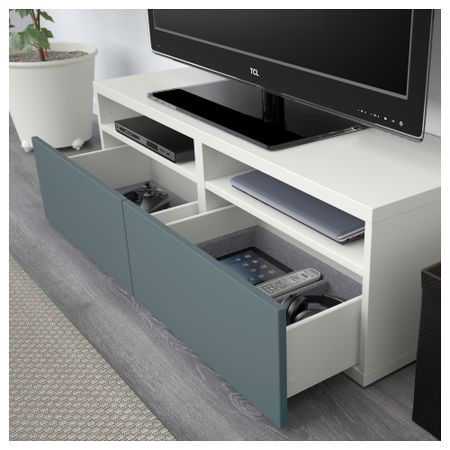 Шкаф для ТВ, комбинированный, стекляные дверцы БЕСТО, под беленый дуб, Вальвикен серо-бирюзовый, прозрачное стекло