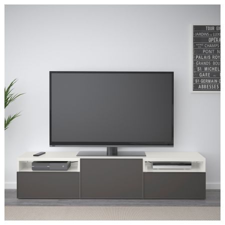 Благодаря интегрированному нажимному механизму ящики и дверца открываются легким нажатием. Благодаря нескольким отверстиям на задней панели тумбы под ТВ провода от телевизора и других устройств всегда будут под рукой, но не на виду.
